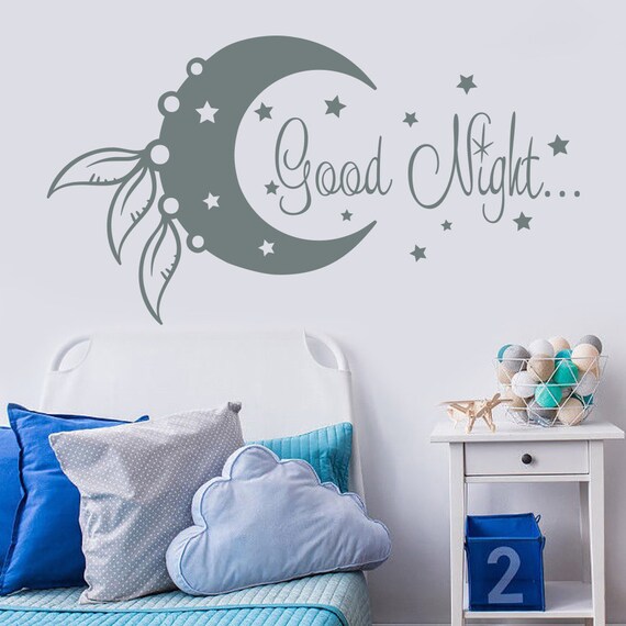 Quote Wall Decal Good Night Wall Sticker Moon And Stars Etsy